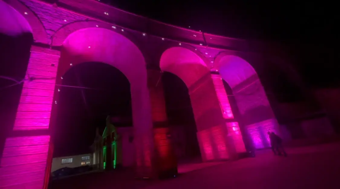 Para 48 Pillars en LLUM Barcelona 2025, RENTEFFECT trabajó estrechamente con el artista para diseñar y producir todos los elementos escenográficos, teatrales y técnicos, asegurando el éxito de esta obra inmersiva al aire libre.